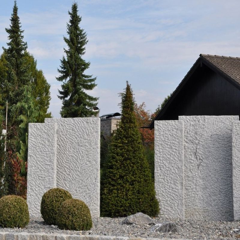 Sichtschutzelement / Zaunelement aus Granit Griys. Farbe hellgrau. Gesägt, Vorder- und Rückseite geflammt, 10 cm stark und 100 cm breit. Rechteckige Ausschnitte oder rundes Guckloch gegen Aufpreis möglich. Bis *350 cm Einzellänge lieferbar. Der Granit Griys ist ein hellgrauer, mittelkörniger bis grobkörniger Granit aus Schlesien. Dieser Granit eignet sich besonders für massive Natursteinarbeiten im Straßen-, Garten- und Landschaftsbau. Granit Griys ist frostbeständig, rost- und säurebeständig. Granit Griys wird hauptsächlich mit geflammter Oberfläche hergestellt. Gestockte oder sandgestrahlte Oberflächenbearbeitungen sind bei diesem Granit möglich. Granit Griys mit polierter Oberfläche wird auch im Innenbereich verwendet und ist dort ein preisgünstiges Baumaterial. Granit Griys ist ein Natursteinprodukt und unterliegt natürlichen Farb- und Kornschwankungen. Der Preis für diesen Artikel gilt ab Werk Schlesien bei angegebener Mindestbestellmenge. Sollten Sie weniger benötigen, klicken Sie auf den blauen Button Preisanfrage. Sie erhalten umgehend ein kostenloses Angebot. Gerne beraten wir Sie auch telefonisch. Rufen Sie uns an unter +49 7761 93790460, aus der Schweiz +41 32 5132833.