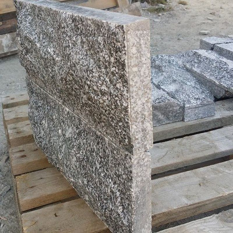 Verblendmauersteine aus Granit Griys. Farbe hellgrau, mittel- bis grobkörniger Granit. Vorderkante gespalten. Rückseite und Größe gesägt. Zum Sanieren und zur Verkleidung von bestehenden Mauern geeignet. Verwendung innen und außen. 15 cm Steinhöhe, in 3 verschiedenen Längen. Andere Formate und Größen auf Anfrage. Der Granit Griys ist ein hellgrauer, mittelkörniger bis grobkörniger Granit aus Schlesien. Dieser Granit eignet sich besonders für massive Natursteinarbeiten im Straßen-, Garten- und Landschaftsbau. Granit Griys ist frostbeständig, rost- und säurebeständig. Granit Griys wird hauptsächlich mit geflammter Oberfläche hergestellt. Gestockte oder sandgestrahlte Oberflächenbearbeitungen sind bei diesem Granit möglich. Granit Griys mit polierter Oberfläche wird auch im Innenbereich verwendet und ist dort ein preisgünstiges Baumaterial. Granit Griys ist ein Natursteinprodukt und unterliegt natürlichen Farb- und Kornschwankungen. Der Preis für diesen Artikel gilt ab Werk Schlesien bei angegebener Mindestbestellmenge. Sollten Sie weniger benötigen, klicken Sie auf den blauen Button Preisanfrage. Sie erhalten umgehend ein kostenloses Angebot. Gerne beraten wir Sie auch telefonisch. Rufen Sie uns an unter +49 7761 93790460, aus der Schweiz +41 32 5132833.