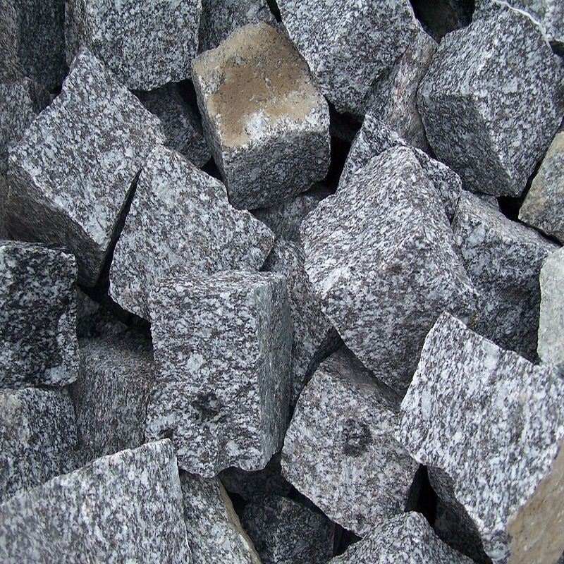 Gespaltene Pflastersteine aus Syenit Kosmin. Farbe dunkelgrau meliert, weiß gepunktet. Grobkörniges Natursteinpflaster, handgespalten. Verladung lose geschüttet, bei kleineren Mengen Verladung in Big Bags zu ca. 1,2 - 1,5 Tonnen. Syenit Kosmin ist ein dunkelgraues, grobkörniges, meliertes Hartgestein aus Schlesien. Das Material eignet sich hervorragend für gespaltene Natursteine, für den Straßenbau sowie für den Garten- und Landschaftsbau. Syenit Kosmin ist frostbeständig, rostfrei, säure- und tausalzbeständig. Der Preis für diesen Artikel gilt ab Werk Schlesien bei angegebener Mindestbestellmenge. Sollten Sie weniger benötigen, klicken Sie auf den blauen Button Preisanfrage. Sie erhalten umgehend ein kostenloses Angebot. Gerne beraten wir Sie auch telefonisch. Rufen Sie uns an unter +49 7761 93790460, aus der Schweiz +41 32 5132833.